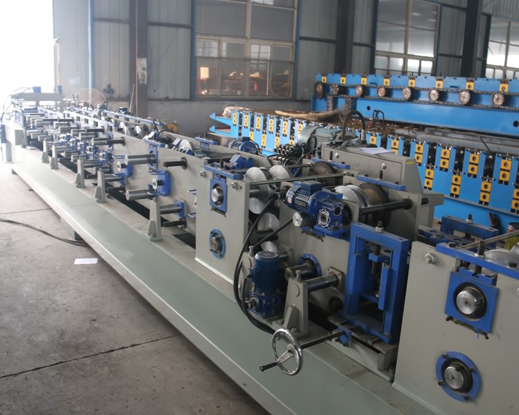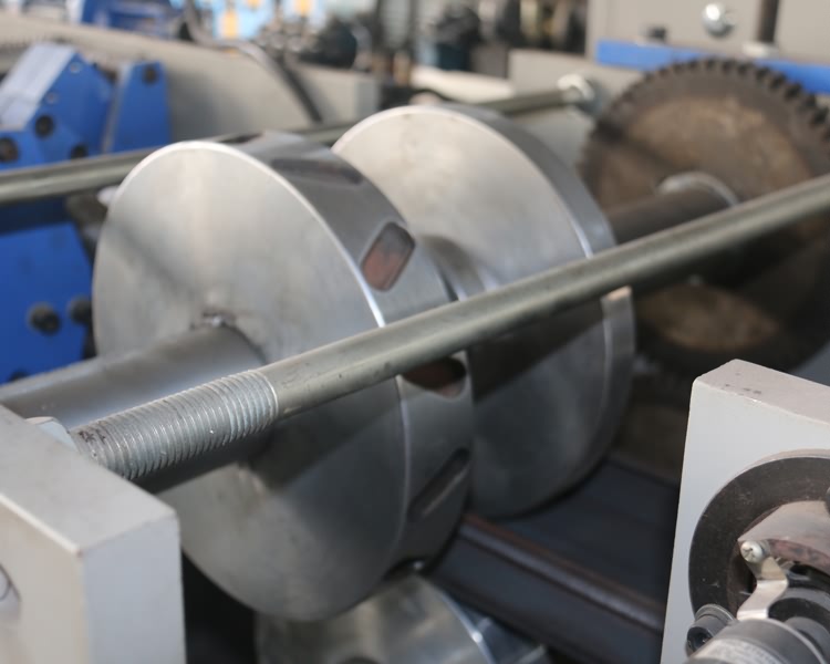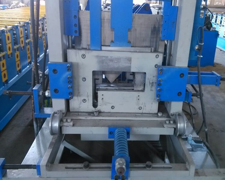 Manual decoiler– punching hole– roll forming machine– molding press– PLC control box– hydraulic system– post cut– output table.