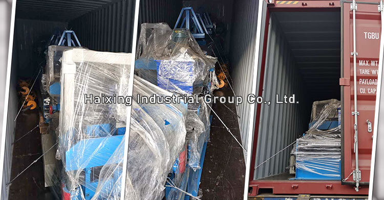 a.The main body of crimping curved arch roll forming machine with water-proof plastic, then fixed to container by 8mm diameter steel wire and angle iron.