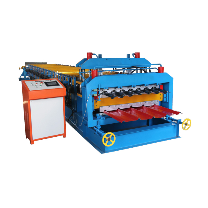This roof roll forming machine can press both glazed and trapezoidal tiles.