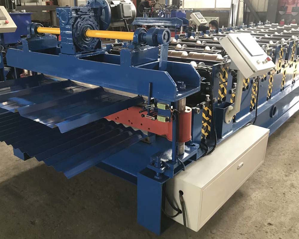 The trapezoidal tile double roll forming machine adopts high-level automatic control software to realize production information management.