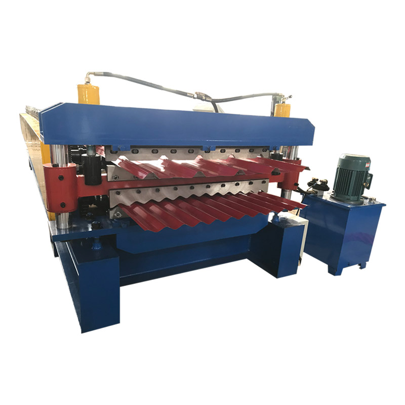 Double layer roof panel roll forming machines can press two types of tiles of different versions. Specific version can be customized according to customer requirements.